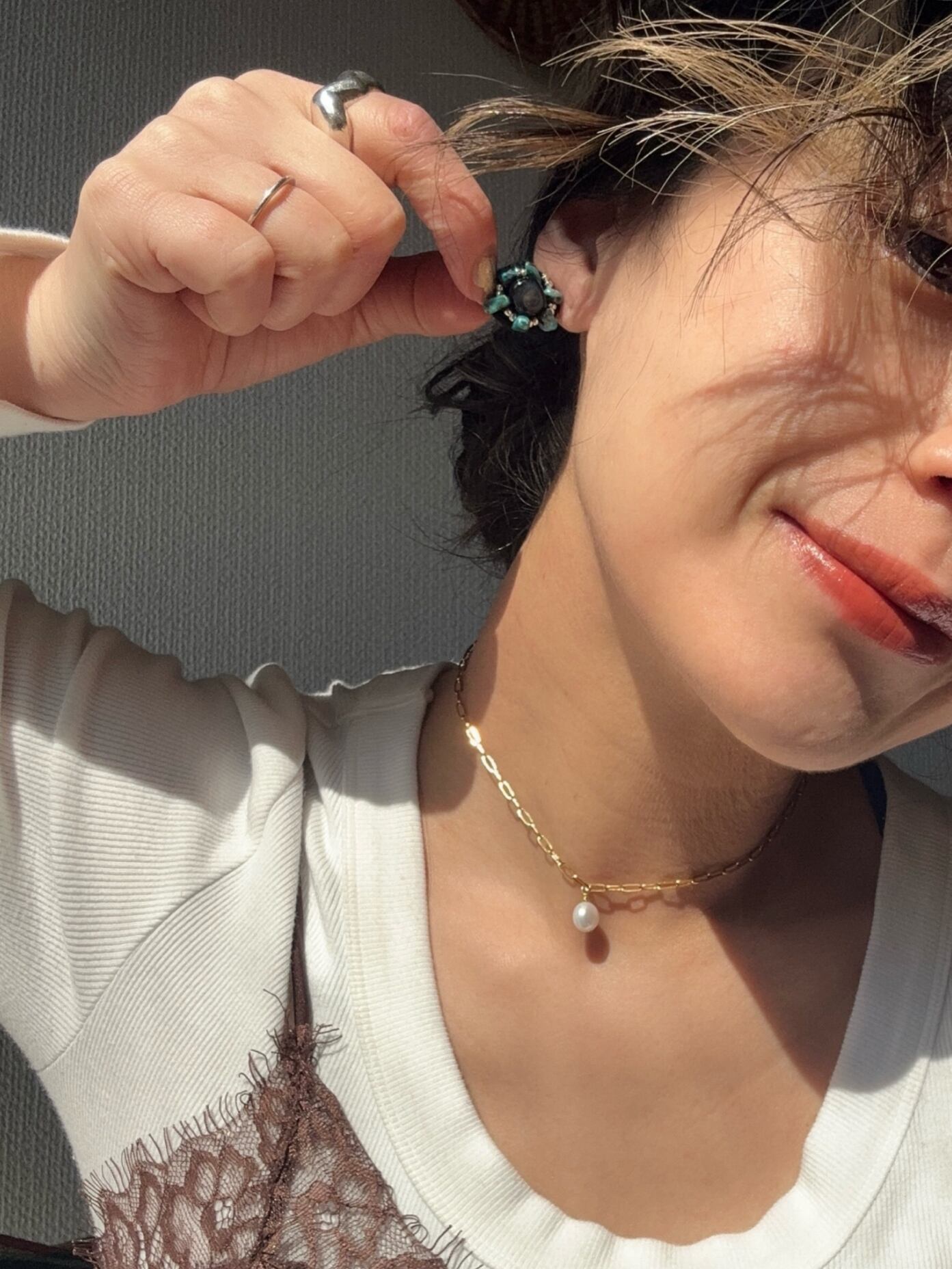 小さいながらに存在感バッチリなピアスをご紹介します!差し色にも合わせやすい赤とあおで普段のコーデを印象変えてお楽しみください^_^