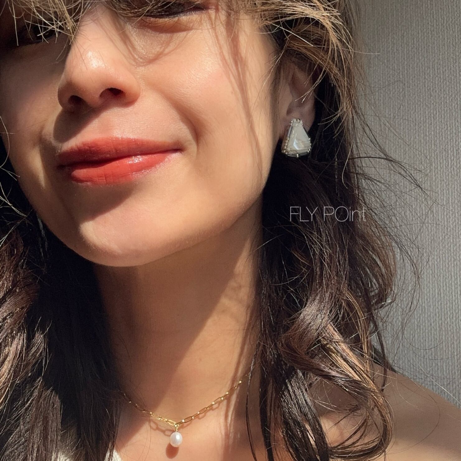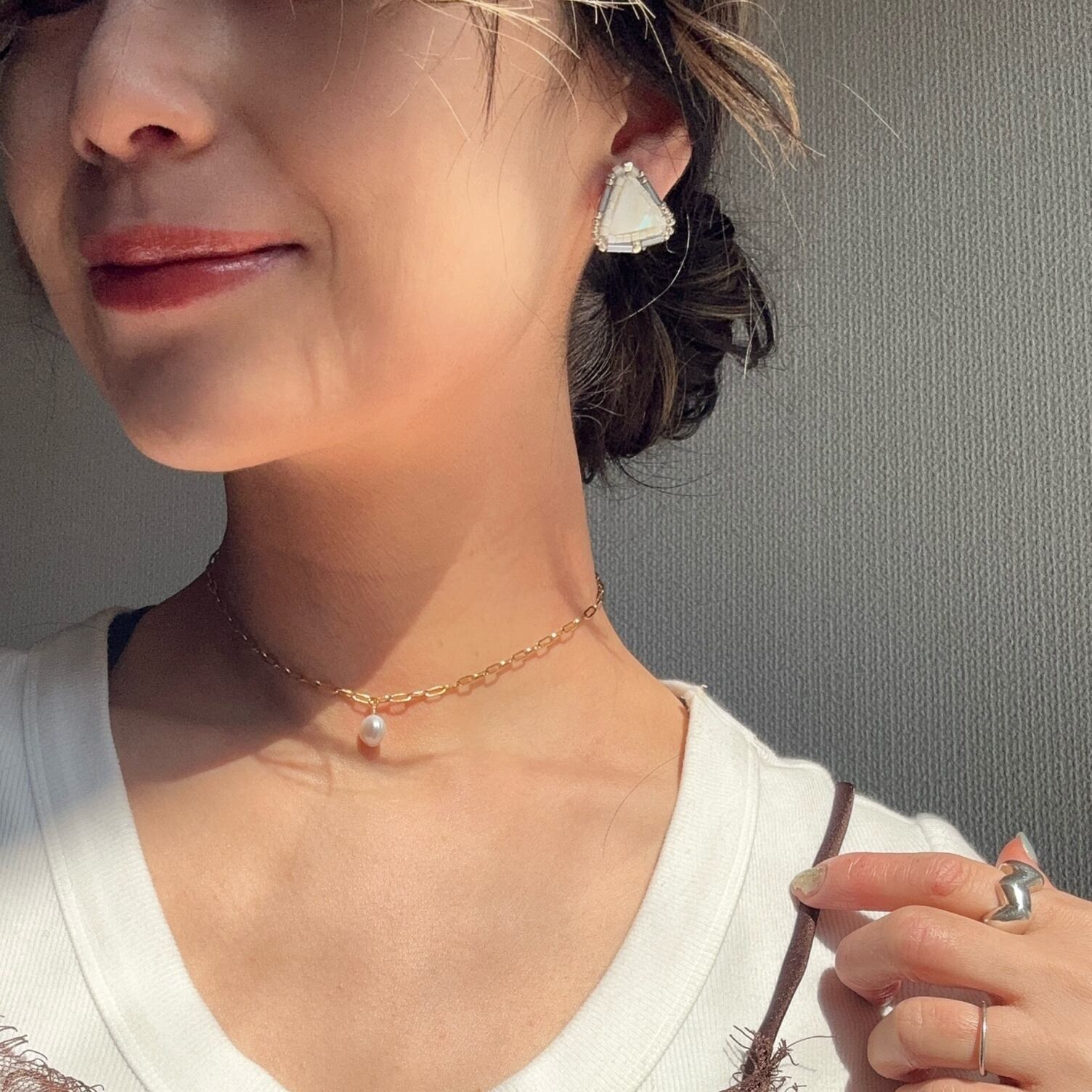肌に溶け込む優しいシェルの色と大人綺麗なブルーグレーのビーズを合わせて仕上げました。
