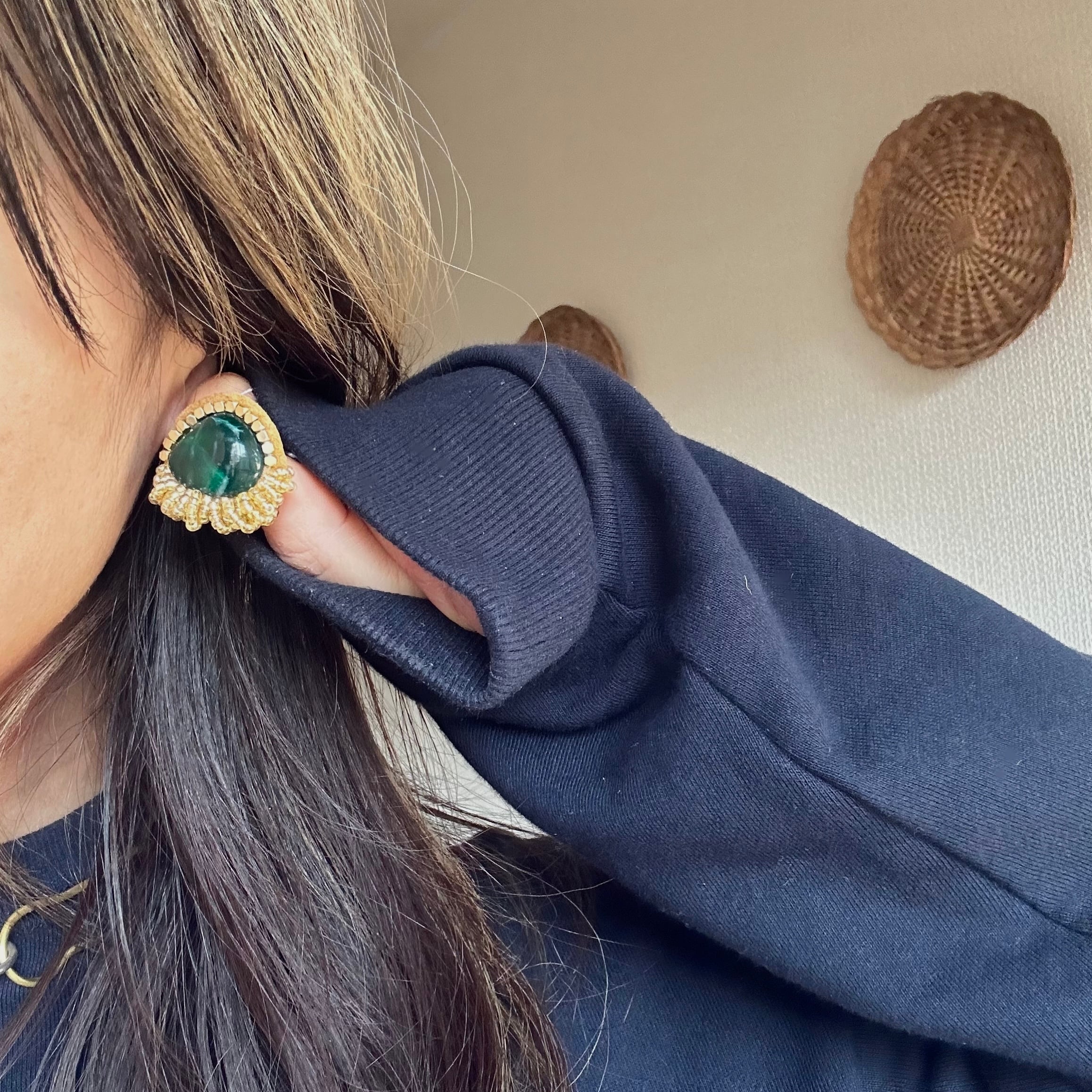 どこかヴィンテージ感の漂う雰囲気で制作したピアス