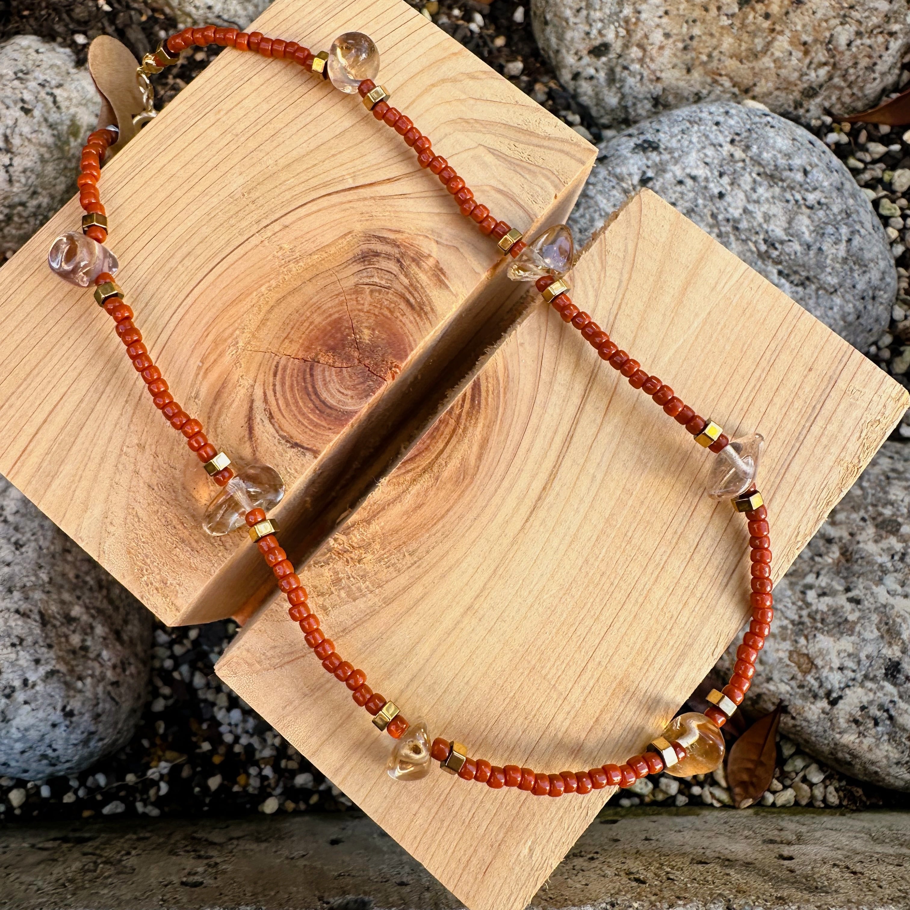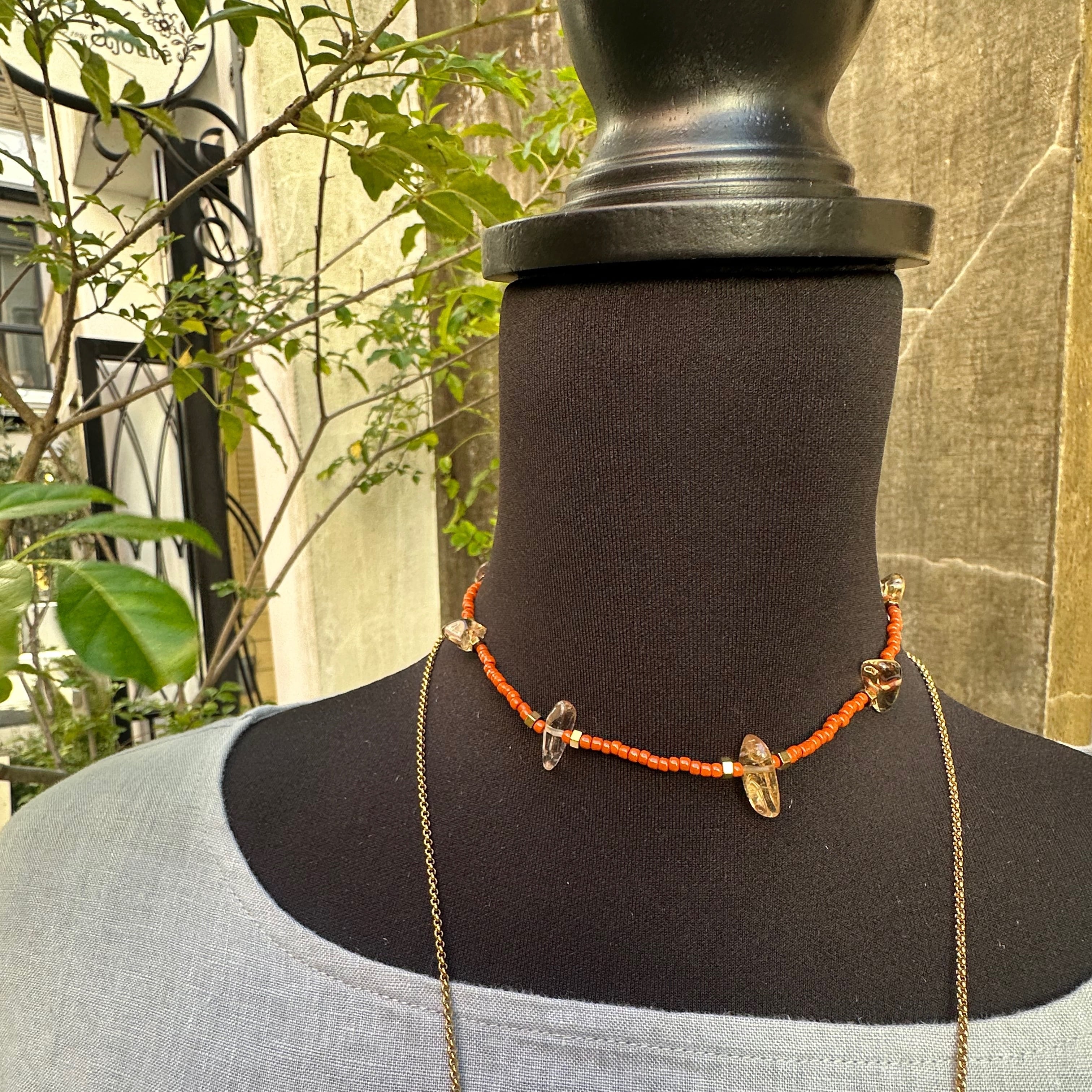 スモーキークォーツを入れて大人可愛いブラウンビーズとヘマタイトのアクセントで夏にもぴったりのネックレスのご紹介です。