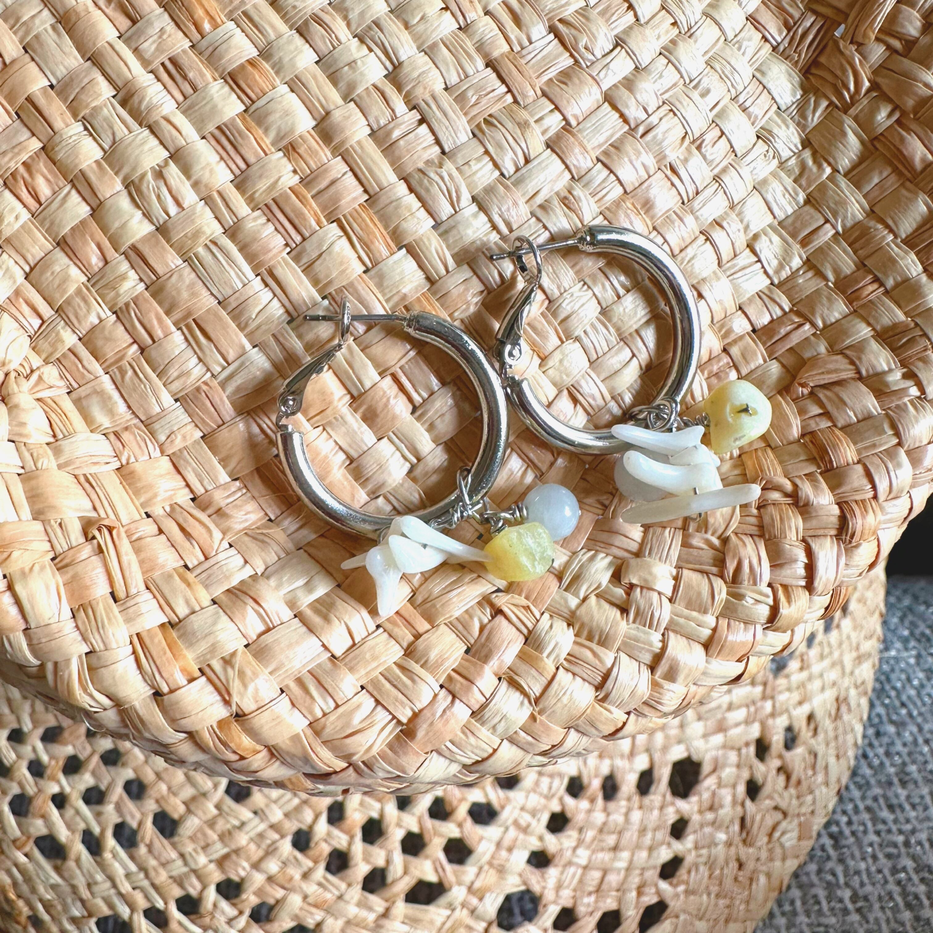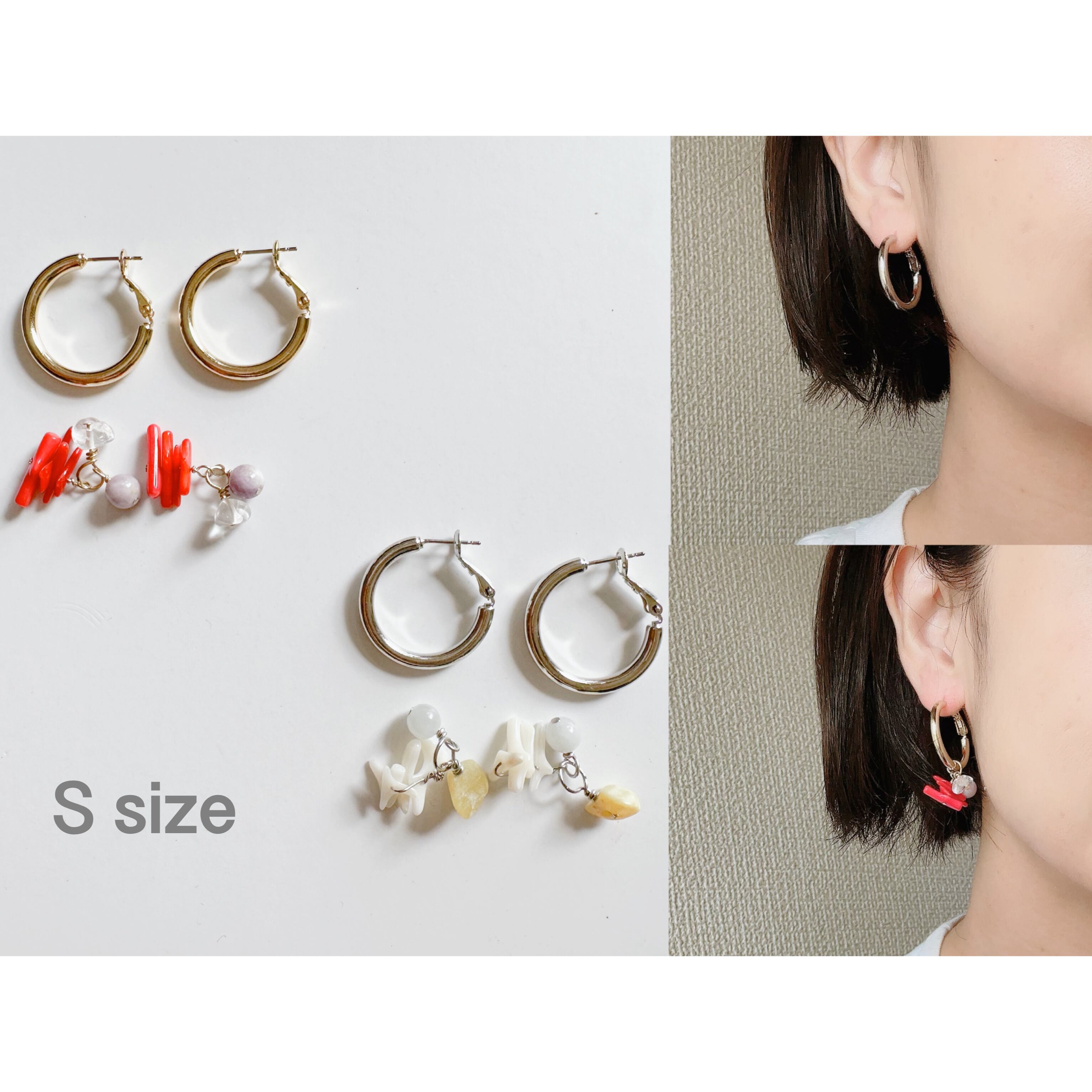 そんなステンレス素材のフープピアスをセレクトし、2wayで楽しめる天然石をデザインしました。
